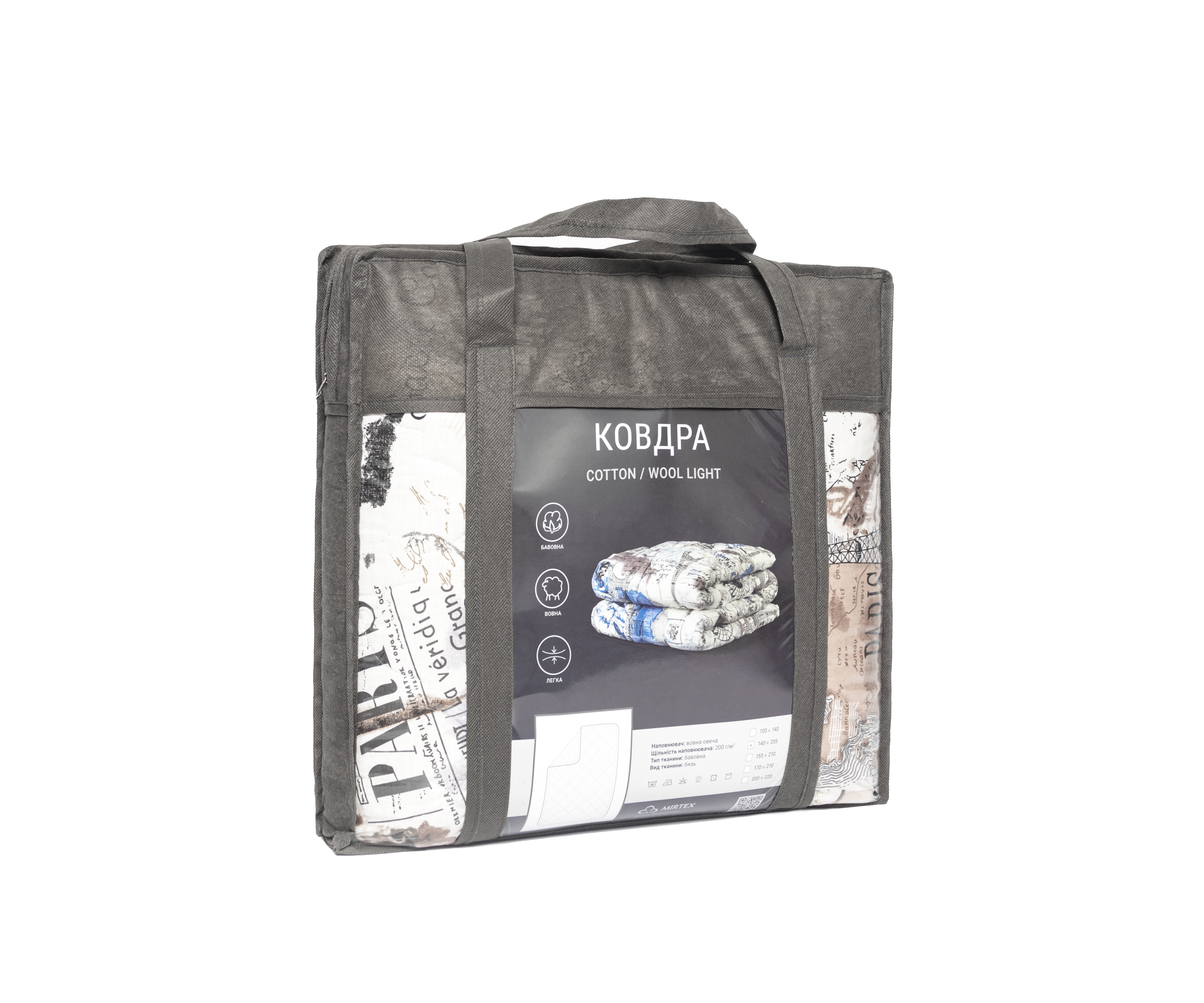 Дана вовняна ковдра має тонкий шар вовни, тому з нею комфортно у будь-який сезон.