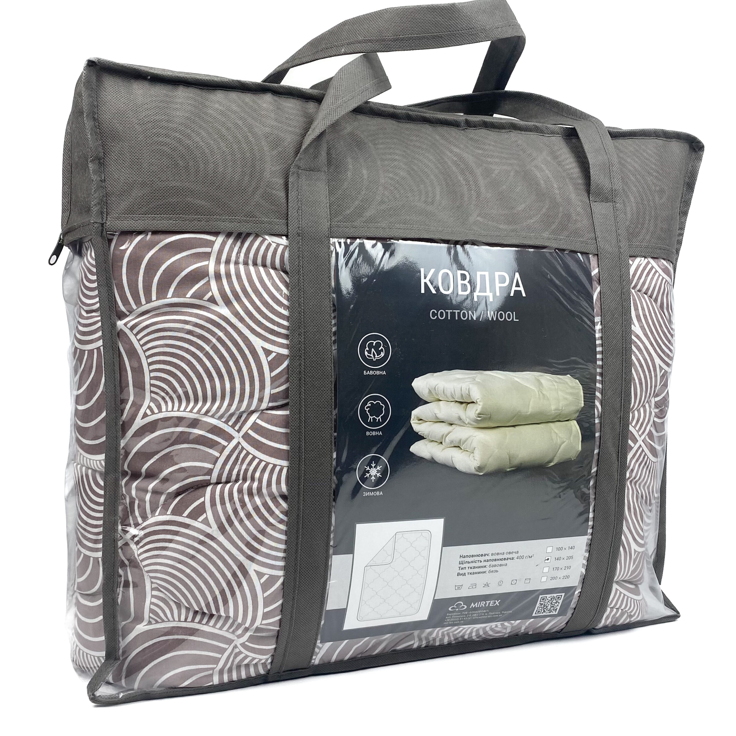 Наповнювач, який ми використовуємо на 70 % натуральна вовна, решта 30% – це синтетичне поліефірне волоко, що забезпечує міцність та запобігає деформації виробу під час експлуатації. Такий максимально натуральний склад ковдри забезпечує міцний сон та має оздоровчий ефект. Щільний шар вовни 400г/м2 досить ефективно зігріє вас взимку, а тканина бязь Голд, яка використовується для стьобання чохла ковдри, додасть приємних тактильних відчуттів.